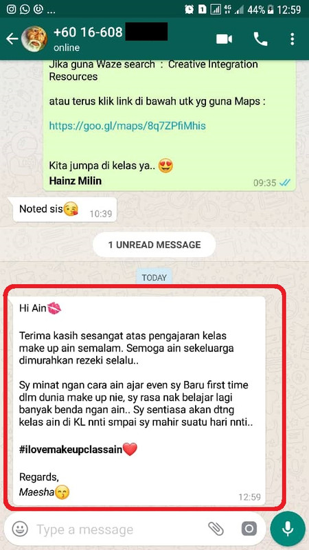 Ain juga sangat mengalu-alukan anda untuk LIKE & FOLLOW Facebook Page MAKEUP CLASS BY HAINZ MILIN semua aktiviti tentang kelas ain akan update di sini.